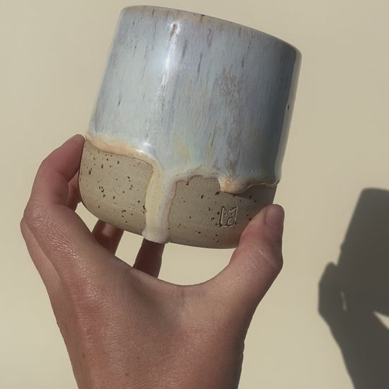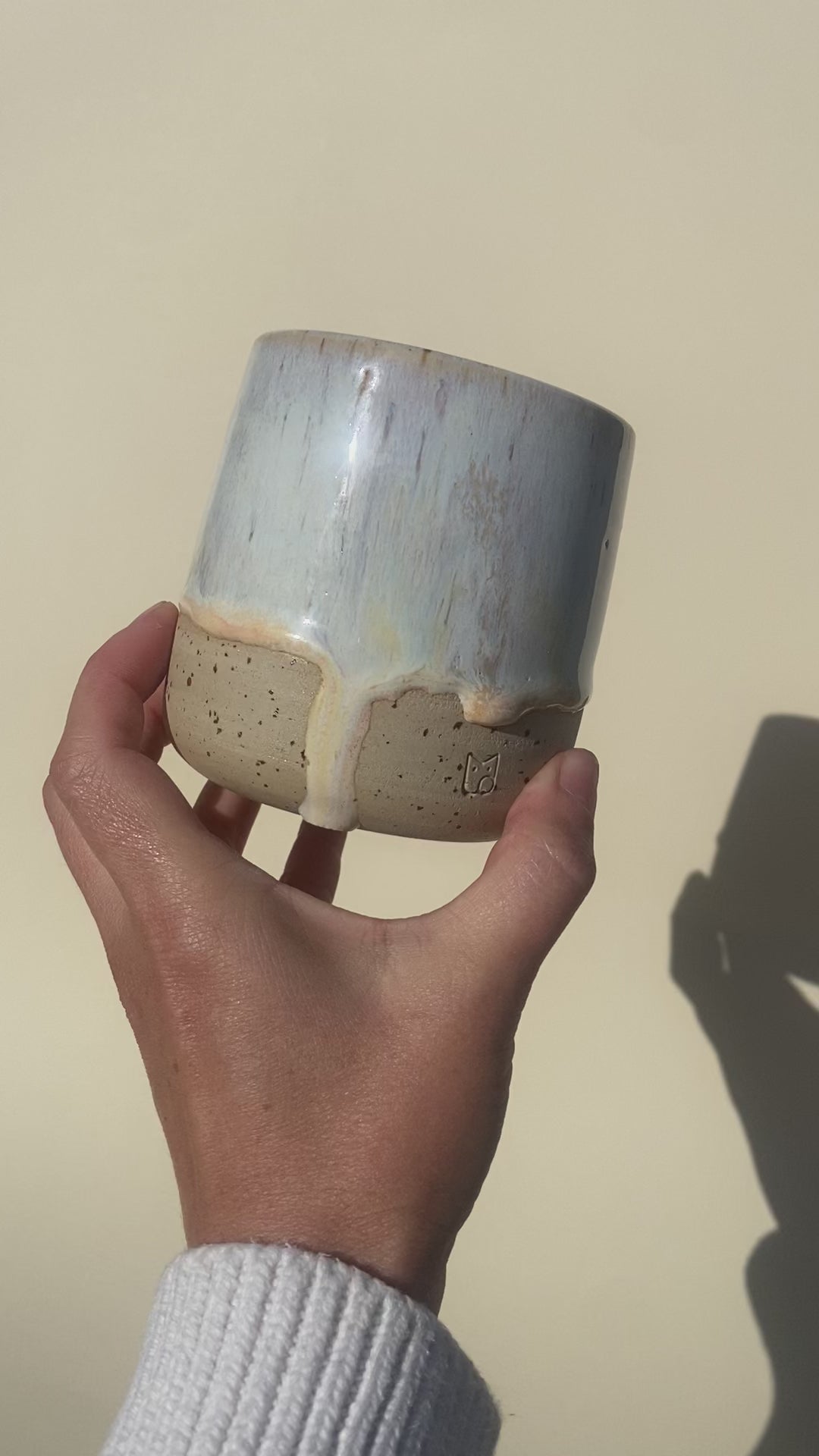 Der sommerlichste Becher, saftige Pfirsichfarbene Glasur die sich den Becher herunterschlängelt.
