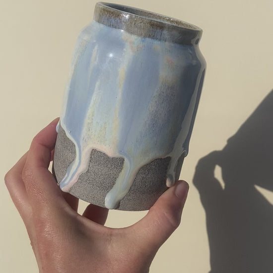 Die neue gerade Vase aus Keramik in der mystischen Universe Glasur ist die perfekte Vase für kleine selbstgepflückte Wiesensträuße.