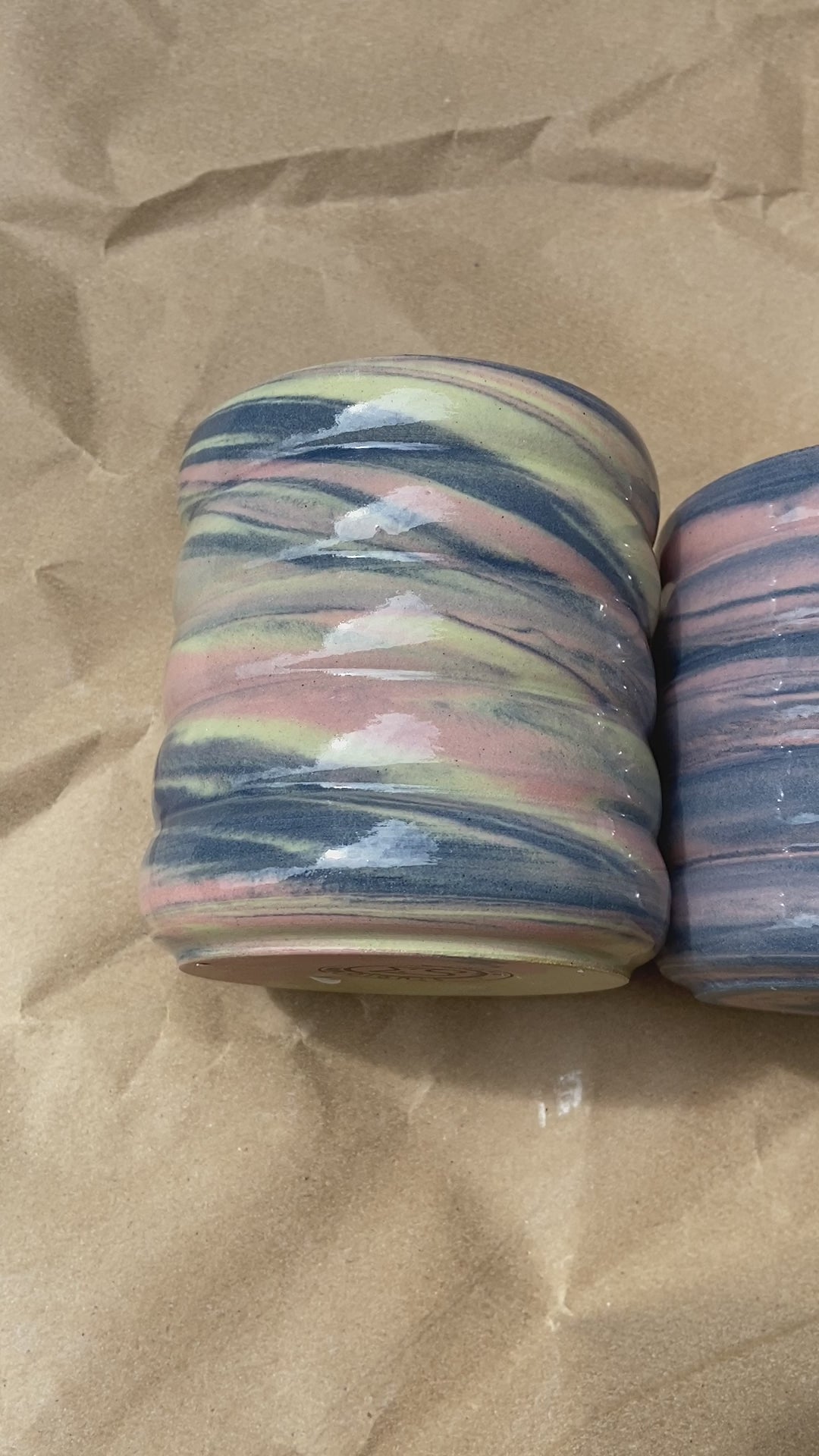 Ich bin so verliebt in diesen pastellen Becher Traum,der Pink Matcha Zwirn Keramik Becher. etwa Drei Wochen dauert es, bis aus rosa und hellgrünen Ton, dieser ultra-coolen pastellige Pink Matcha Becher entsteht, der garantiert für gute Laune sorgt.